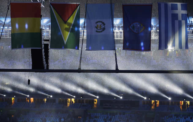Rain falls at the Maracana Stadium before the closing ceremony of the Rio Olympics in Rio de Janeiro on Sunday. AP