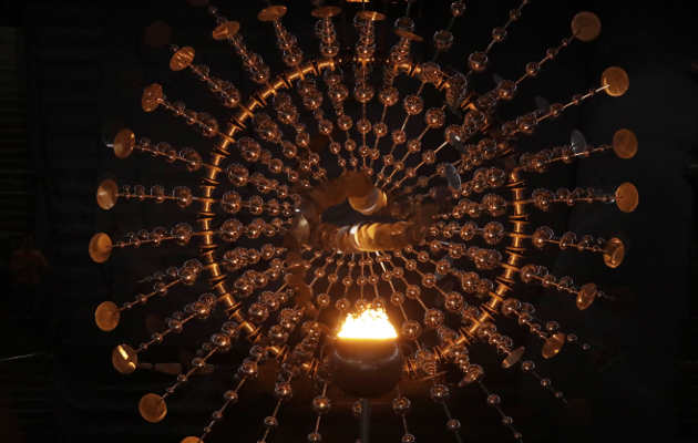 The Olympic flame burns before the start of the closing ceremony of the Rio Olympics at the Maracana stadium in Rio de Janeiro on Sunday. AP