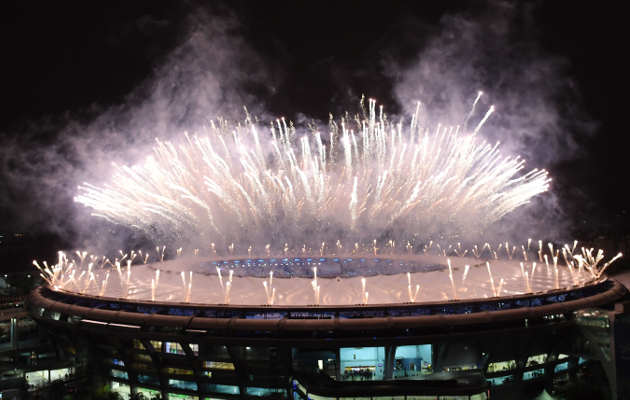 Fireworks light up the night sky during the closing ceremony of the Rio Olympics at the Maracana stadium in Rio de Janeiro on Sunday. AFP